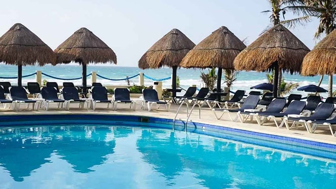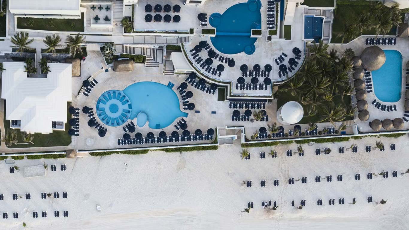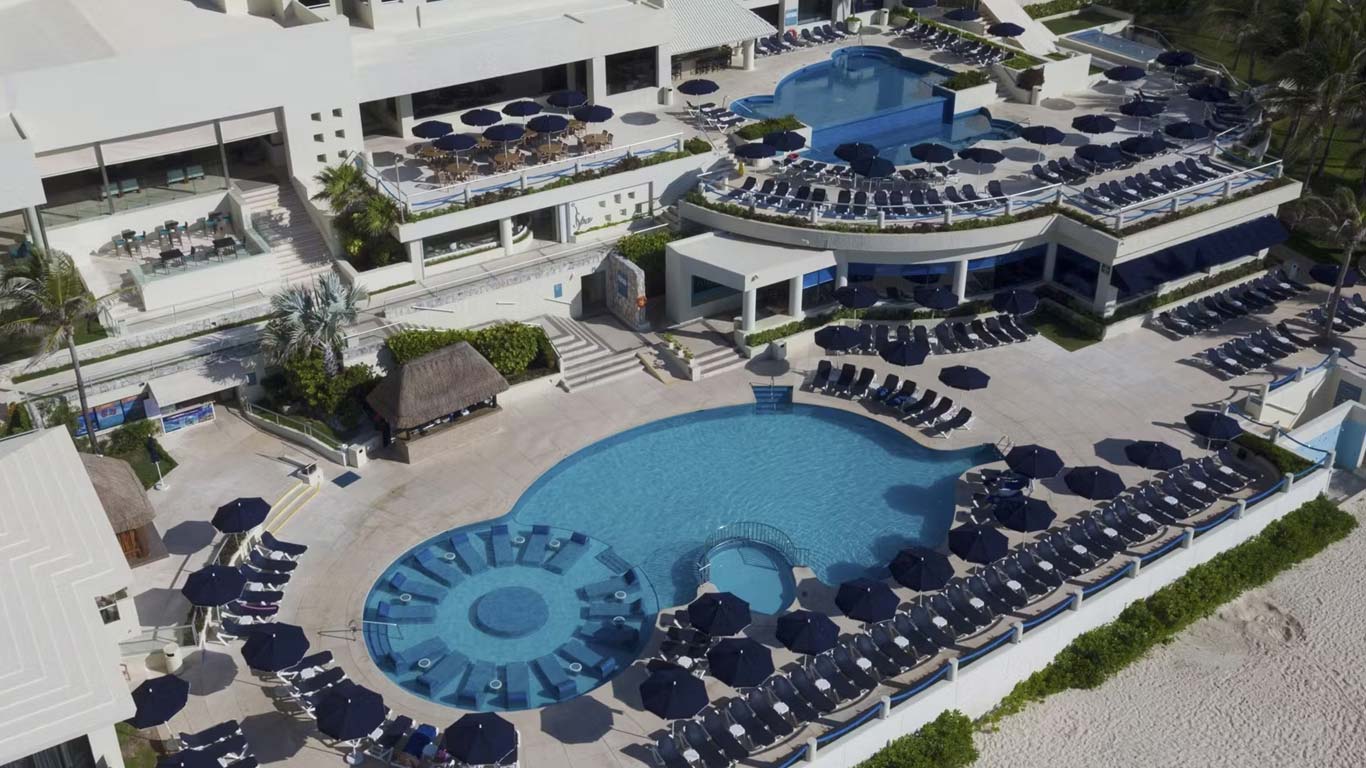 The Occidental Tucancún Beach Hotel has 3 pools, one with an innovative lounger area in its center.